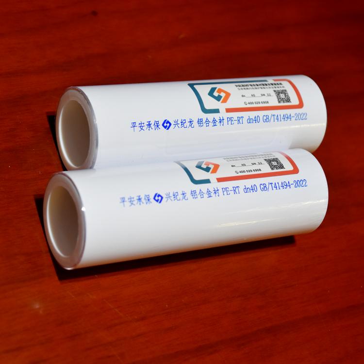 外層鋁合金:外層鋁合金層采用6063合金無縫鋁管,顏色為白色,表面采用高溫噴涂樹脂材料,使外層鋁管不僅有較強(qiáng)的硬度且提高了鋁合金管耐酸堿、耐腐蝕性能,與建筑墻體顏色一致,不褪色。內(nèi)層PE-RT材料:與興紀(jì)龍牌PE-RTII型產(chǎn)品材料特性相同。