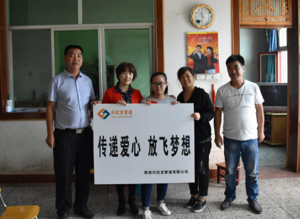 在社會經(jīng)濟(jì)飛速發(fā)展的今天,許多城市中的孩子過上了幸福美滿的生活,可是在我們周圍仍然有很多貧困兒童。目前,我國1.62億在校中小學(xué)生中,有上千萬的貧困學(xué)生,甚至每年有約200萬學(xué)生因家庭貧困而輟學(xué),導(dǎo)致貧困狀況在幾代人中延續(xù)。愛心無止境、愛心在身邊,傳遞愛心  放飛夢想,在公司不斷發(fā)展壯大的同時(shí),作為管道行業(yè)領(lǐng)先企業(yè),陜西興紀(jì)龍管道有限公司,以感恩的心態(tài)回歸社會,自2014年5月份開始,經(jīng)興紀(jì)龍管道的全體員工一致表決后,開始實(shí)施每年拿出一分部資金用于愛心助苗活動。截止到2017年9月份,我們已經(jīng)成功開展4屆愛心助學(xué)活動的條例,累計(jì)扶持幼苗:34株,累計(jì)捐出助學(xué)款項(xiàng)26500元。2017年9月4日,陜西興紀(jì)龍管道有限公司一年一度的愛心助苗活動如約而至,我們依舊帶著我們的愛心之力開啟我們的助學(xué)之路讓更多的孩子享受學(xué)習(xí)和生活的快樂。