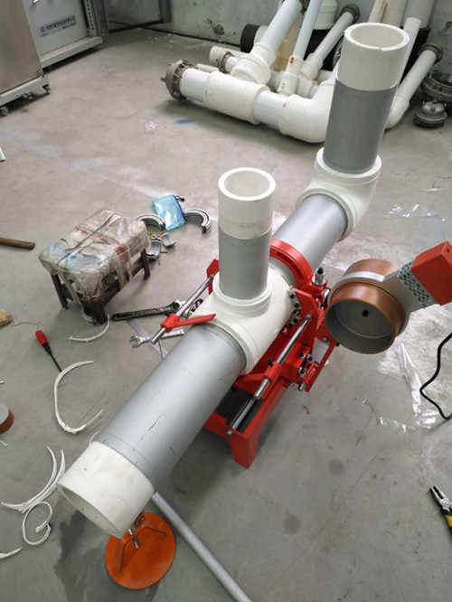 (2)大口徑的管材與管件安裝過程中,由于管材、管件自身的重量大,在熱熔過程中需要非常大的力量才能將管材熔入到管件中,加上由于采用人工操作,需要大量的人員參與,會造成力量分散、用力不均勻等情況的出現(xiàn),安裝后管材和管件會出現(xiàn)與軸向不垂直和偏心的情況,這樣的結(jié)果是既浪費(fèi)人力,又保障不了安裝質(zhì)量;