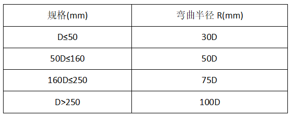 4、管槽轉(zhuǎn)彎時(shí),轉(zhuǎn)彎角度不宜過大,彎曲半徑應(yīng)符合下列規(guī)定: