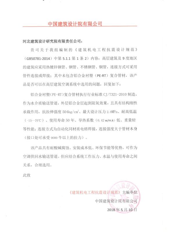 鋁合金襯塑復合管:鋁合金襯塑復合管采用先性預應力復合技術(shù)生產(chǎn)形成,內(nèi)管采用耐熱增強聚乙烯(PE-RTI型或者PE-RTII型)、聚丁烯(PB)、無規(guī)共聚聚丙烯(PP-R)、聚乙烯(PE)。鋁合金襯塑復合管使用領(lǐng)域廣,PE-RT用于生活冷熱水及中央空調(diào)水系統(tǒng)管道、PB用于暖通的明暗裝管材、PPR用于生活給水管道、PE用于燃氣管道。目前鋁合金襯塑復合PE-RT管大多用于生活冷熱水及中央空調(diào)水系統(tǒng)管道。